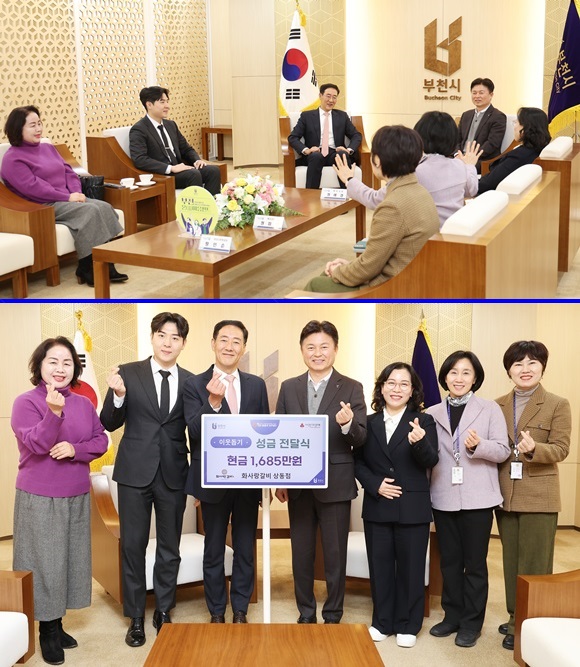 Á¶¿ëÀÍ ºÎõ½ÃÀåÀÌ 20ÀÏ ½Ãû 5Ãþ ¸¸³²½Ç¿¡¼­ È­»ç¶û°¥ºñ »óµ¿Á¡ ÀÌ¿ôµ½±â ¼º±Ý Àü´Þ½Ä¿¡¼­ Â÷´ãÀ» °®°í ±â³äÃÔ¿µÀ» Çϰí ÀÖ´Ù.(»çÁø= ºÎõ½Ã Á¦°ø)