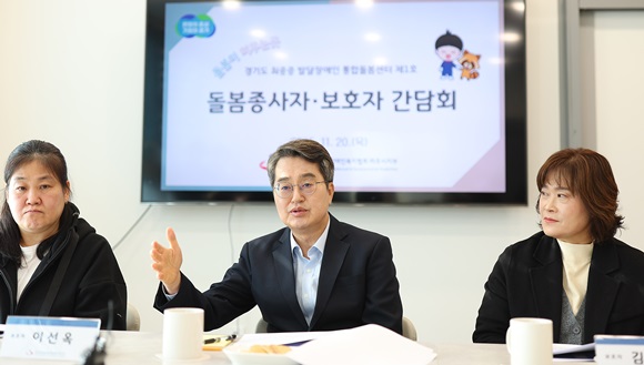 ±èµ¿¿¬ °æ±âµµÁö»ç°¡ 20ÀÏ ÆÄÁֽÿ¡ ÀÖ´Â Á¦1È£ ¡®°æ±âµµ ÃÖÁßÁõ ¹ß´ÞÀå¾ÖÀÎ ÅëÇÕµ¹º½¼¾ÅÍ¡¯¸¦ ¹æ¹®ÇØ µ¹º½Á¾»çÀÚµé°ú °£´ãȸ¸¦ °®°í ÀÖ´Ù.(»çÁø= °æ±âµµ Á¦°ø)