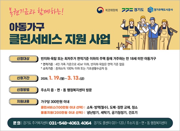 ºÎõ½Ã´Â ÁÖ°ÅÃë¾à ¾Æµ¿ÀÇ °Ç°­ÇÑ ¼ºÀå°ú ÁÖ°Å±Ç º¸È£¸¦ À§ÇØ ¡®2026³â ¾Æµ¿°¡±¸ Ŭ¸°¼­ºñ½º Áö¿ø»ç¾÷¡¯À» º¹±Ç±â±Ý°ú ÇÔ²² ÃßÁøÇÑ´Ù°í 27ÀÏ ¹àÇû´Ù.