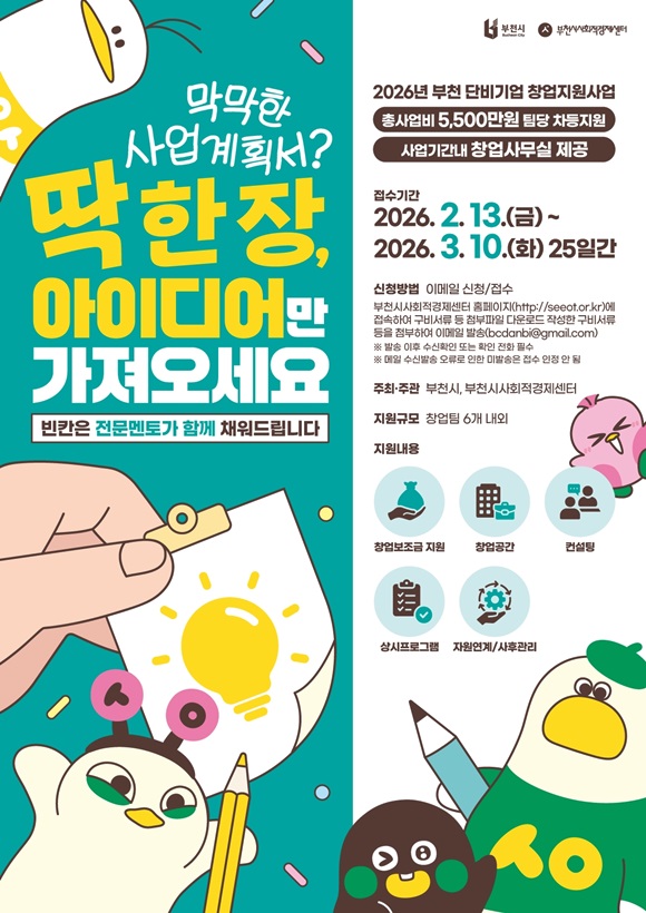 ϴ ù õ Ȩ(bucheon.go.kr) õ ȸ Ȩ(seeot.or.krٷ Ŭ) û ޾ ڿ(bcdanbi@gmail.com) ϸ ȴ. 2026 õܺ â Ǵ õ ڸå(032-625-2992) ϸ ȴ.