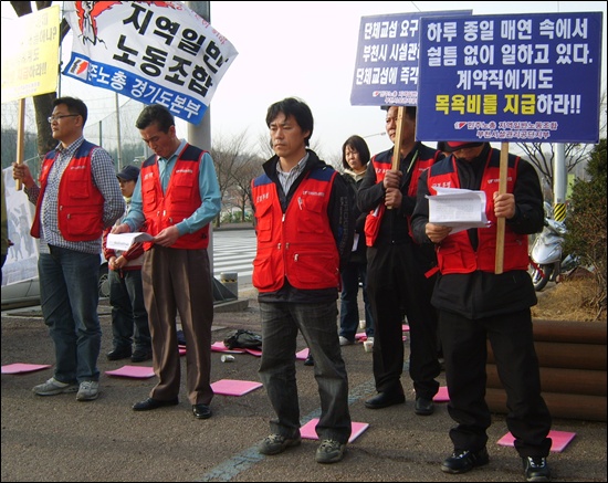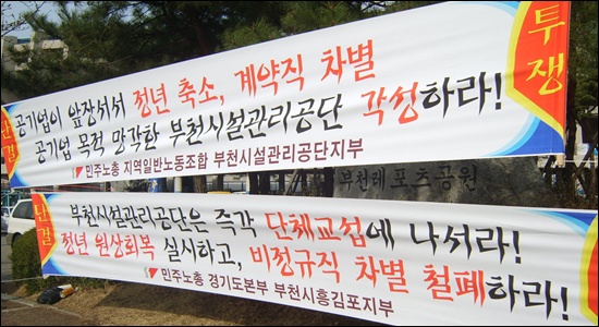 ¹ÎÁÖ³ëÃÑ Áö¿ªÀϹݳ뵿Á¶ÇÕ ºÎõ½Ã¼³°ü¸®°ø´ÜÁöºÎ´Â 8ÀÏ ¿ÀÈÄ 4½Ã ºÎõÁ¾ÇտÀå ½Ã¼³°ü¸®°ø´Ü ¾Õ¿¡¼­ ¡®ºÎõ½Ã¼³°ü¸®°ø´Ü ºñÁ¤±ÔÁ÷ Â÷º° ½ÃÁ¤°ú ´Üü±³¼· Ã˱¸ °áÀÇ´ëȸ¡¯¸¦ °®°í ÁÖÂ÷°ü¸® °è¾àÁ÷ Á¶ÇÕ¿ø 8¸í¿¡ ´ëÇÑ ¾ÈÀü¼ö´ç°ú ¸ñ¿åºñ, ½Äºñ(Á¡½É°ª) Áö±Þ µî¿¡ °üÇÑ ´Üü±³¼· ¿ä±¸¿¡ ÀÀÇÒ °ÍÀ» °ø´Ü Ãø¿¡ Ã˱¸Çß´Ù.