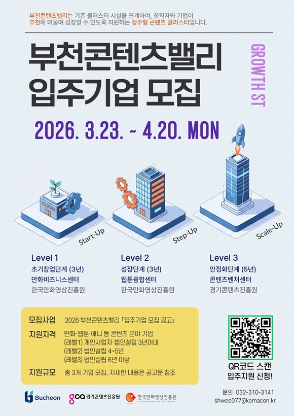 ºÎõ½Ã´Â ÄÜÅÙÃ÷±â¾÷ ¼ºÀå »ýŰè Á¶¼ºÀ» À§ÇØ °æ±âÄÜÅÙÃ÷ÁøÈï¿ø, Çѱ¹¸¸È­¿µ»óÁøÈï¿ø°ú Çù·ÂÇØ ±â¾÷ ´Ü°èº° ¼ºÀå Áö¿ø°ú »ê¾÷ ³×Æ®¿öÅ© °­È­¸¦ ÃßÁøÇÏ¸ç ¡®ºÎõÄÜÅÙÃ÷¹ë¸®¡¯ »ç¾÷ Âü¿© ±â¾÷À» ¿À´Â 4¿ù 2ÀϱîÁö ¸ðÁýÇÑ´Ù.