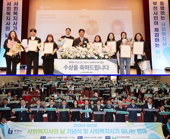ºÎõ½Ã¿Í ºÎõ½Ã»çȸº¹Áö»çÇùȸ(ȸÀå ¹ÚÇö)´Â Áö³­ 3¿ù 31ÀÏ ¼Ò»ç±¸Ã» ¼ÒÇâ°ü¿¡¼­ »çȸº¹Áö»ç 300¿© ¸íÀÌ Âü¼®ÇÑ °¡¿îµ¥ ¡®Á¦20ȸ »çȸº¹Áö»çÀÇ ³¯ ±â³ä½Ä¡¯À» °³ÃÖÇß´Ù.