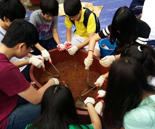 ¿ª°îõ¿¡ À̳¯ ÅõôÇÑ EMÈë°øÀº Áö³­´Þ 23ÀÏ Ã»¼Ò³â ÀÚ¿øºÀ»çÀÚ ¹× ÀÚ»ý´Üü¿øµéÀÌ Á÷Á¢ ÈëÀ» ´ÙÁö°í EM(Effective Microorganisms¡¤À¯¿ë ¹Ì»ý¹°)À» ¼¯¾î ¸¸µç µÚ 2ÁÖ°£ÀÇ ¼÷¼º °úÁ¤À» °ÅÄ£ °ÍÀÌ´Ù.