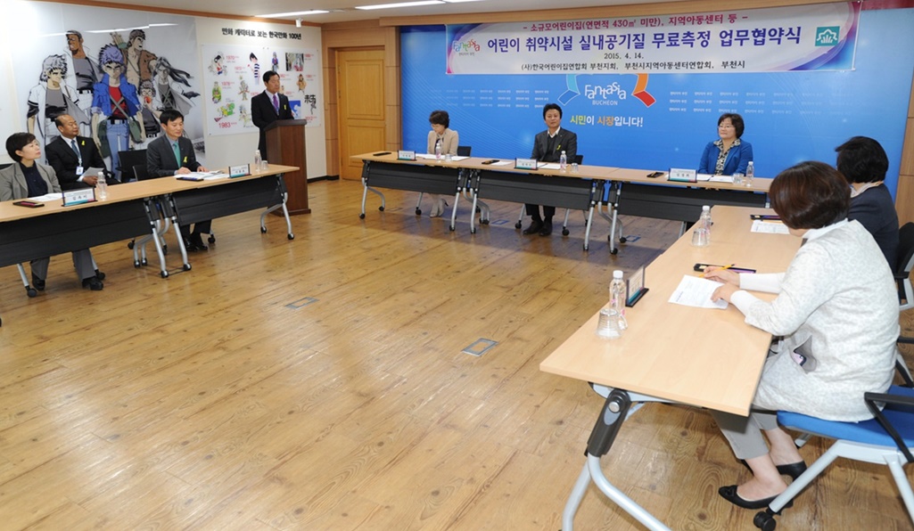 ºÎõ½Ã´Â 14ÀÏ ¿ÀÀü ½Ãû ¸¸³²½Ç¿¡¼­ ¿¬¸éÀû 430§³¹Ì¸¸ÀÇ ¼Ò±Ô¸ð ¾î¸°ÀÌÁý°ú Áö¿ª¾Æµ¿¼¾ÅÍ µî ¾î¸°ÀÌ Ãë¾à½Ã¼³ ½Ç³» °ø±âÁú ¹«·á ÃøÁ¤À» À§ÇØ (»ç)ºÎõ½Ã ¾î¸°ÀÌÁý¿¬ÇÕȸ(ȸÀå ÀÌ¿µÈñ), ºÎõ½Ã Áö¿ª¾Æµ¿¼¾ÅÍ¿¬ÇÕȸ(ȸÀå ±è°æÈñ)¿Í ¾÷¹«Çù¾àÀ» ü°áÇß´Ù.