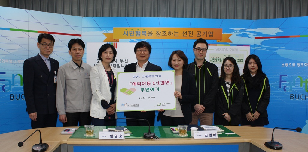 ºÎõ½Ã ½Ã¼³°ü¸®°ø´Ü(ÀÌ»çÀå ÀÓ¸íÈ£)Àº 28ÀÏ »çȸ°øÇå Ȱµ¿°ú ³ª´® °æ¿µ ½ÇõÀÇ ÀÏȯÀ¸·Î ÇØ¿Ü ºó°ï ¾Æµ¿À» Á¤±âÀûÀ¸·Î ÈÄ¿øÇϱâ À§ÇØ ±¹Á¦±¸È£°³¹ß NGO´ÜüÀÎ ¡®±Â³×À̹ö½º¡¯ °æ±âºÎõÁöºÎ(ÁöºÎÀå ±è¹Î¾Ö)¿Í ¡®ÇØ¿Ü ¾Æµ¿ 1:1 °á¿¬¡¯ ÈÄ¿ø½ÄÀ» °³ÃÖÇß´Ù.