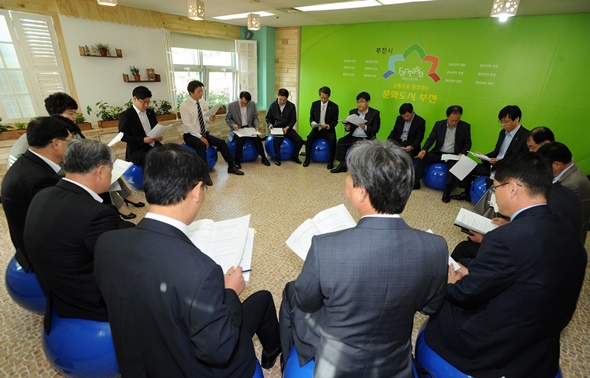 ºÎõ½Ã´Â 4ÀÏ ¿ÀÀü ±è¸¸¼ö ½ÃÀå ÁÖÀç·Î ¿¸° ¡®Á¤Ã¥±âȹȸÀÇ¡¯¸¦ ¡®Áüº¼(Gym Ball)¡¯¿¡ ¾É¾Æ Á¤Ã¥ Çö¾ÈÀ» ÀÚÀ¯·Ó°í °ÝÀÇ ¾ø°Ô Åä·ÐÇÏ´Â ¹æ½ÄÀ¸·Î ÁøÇàÇß´Ù. 2015.5.4 <<ºÎõ½Ã Á¦°ø>>