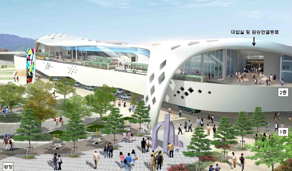 ¿ª»ç 2ÃþÀº Àüö°ú ¹ö½º, 1ÃþÀº ÅÃ½Ã¿Í ½Â¿ëÂ÷¸¸ ´Ù´Ò ¼ö ÀÖ°Ô µÈ´Ù. ÀÌ¿¡ µû¶ó ¹ö½º¿Í Àüö °£ ȯ½Âü°è°¡ ¼öÆò ȯ½Âü°è·Î ÀüȯµÅ ȯ½Â°Å¸®°¡ ±âÁ¸ 90m¿¡¼­ 20m·Î, ȯ½Â½Ã°£Àº 6ºÐ¿¡¼­ 4ºÐÀ¸·Î ´ÜÃàµÈ´Ù.