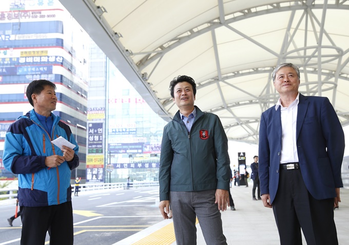 ±è¸¸¼ö ½ÃÀåÀº ¡°¼Û³»¿ª ȯ½Â¼¾ÅÍ¿¡´Â ¿ì¸®³ª¶ó ÃÖÃÊ·Î ¹ö½º, ÅýÃ, ÀüöÀÌ µ¿½Ã¿¡ ȯ½ÂÇÏ´Â ½Ã¼³·Î, 10¿ùÁßÀ¸·Î ³ª¸ÓÁö ¹ö½º ³ë¼±µµ ¿îÇàÇÒ ¼ö ÀÖµµ·Ï 2´Ü°è ÁذøÀ» Çϰí, 12¿ù¿¡´Â ±¤Àå Á¶¼ºÀ» ¸¶¹«¸®Çϰڴ١±°í ¸»Çß´Ù.