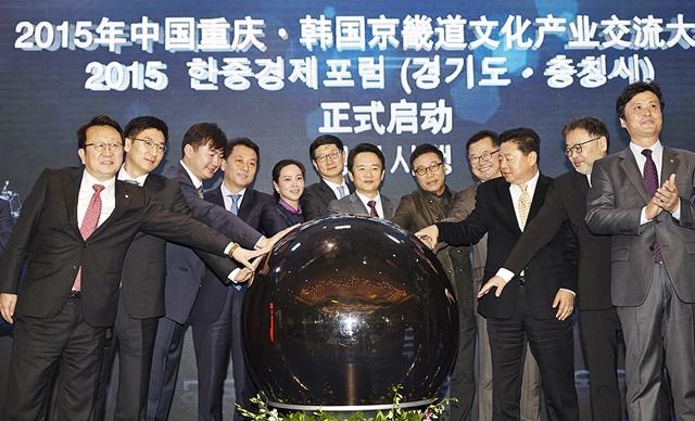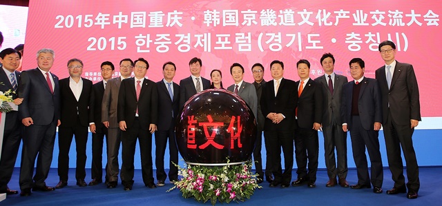 °æ±âµµ¿Í Áß±¹ ÃæÄª½Ã°£ÀÇ °æÁ¦±³·ùÀÇ ÀåÀ» ¸¶·ÃÇÏ°í ¾ç Áö¿ª°£ ÇâÈÄ °æÁ¦Çù·Â ¹× ±³·ùÈ®´ë ¹æ¾È µî ³íÀÇÇϱâ À§ÇØ Áß±¹À» ¹æ¹®ÇÑ ³²°æÇÊ °æ±âµµÁö»ç°¡ 4ÀÏ(ÇöÁö½Ã°¢) ¿ÀÀü ÃæÄª½Ã ¿ìµÎ(WUDU)È£ÅÚ¿¡¼­ ¿­¸° ¡®ÇÑÁß °æÁ¦Æ÷·³¡¯ °³¸·½Ä¿¡¼­ Âü¼®ÀÚµé°ú ±â³äÃÔ¿µÀ» Çϰí ÀÖ´Ù. »çÁø ¿À¸¥ÂÊ¿¡¼­ ¼¼¹øÂ° ±è¸¸¼ö ºÎõ½ÃÀå°ú ¹Ù·Î ¿· ¼­¿µ¼® °æ±âµµÀÇ¿ø(»õÁ¤Ä¡¹ÎÁÖ¿¬ÇÕ¤ýºÎõ7) ¸ð½Àµµ º¸ÀδÙ. <<»çÁø= °æ±âµµ Á¦°ø>>