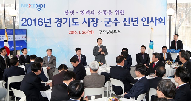 ³²°æÇÊ Áö»ç´Â À̳¯ ¿ÀÀü 10½Ã °æ±âµµ ±Â¸ð´×ÇϿ콺¿¡¼ ¿¸° 2016³â ½ÃÀå¤ý±º¼ö ½Å³âÀλçȸ¿¡¼ ¡°µµ¿Í ½Ã±ºÀÌ º¸À¯ÇÑ ÅäÁö, ÀçÁ¤, Àη°ú ¹Î°£±â¾÷ÀÇ Ã¢ÀÇ·ÂÀ» ¹Àº »õ·Î¿î °æÁ¦¸ðµ¨ÀÎ ¡®°øÀ¯Àû ½ÃÀå°æÁ¦¡¯¸¦ °æ±âµµ¿¡¼ ½ÃÀÛÇÒ °Í¡±À̶ó¸ç ¡°°øÀ¯Àû ½ÃÀå°æÁ¦ÀÇ Åµ¿¿¡ ÇÔ²² Çù·ÂÇØ ´Þ¶ó¡±°í ¸»Çß´Ù.