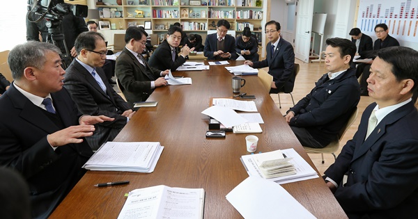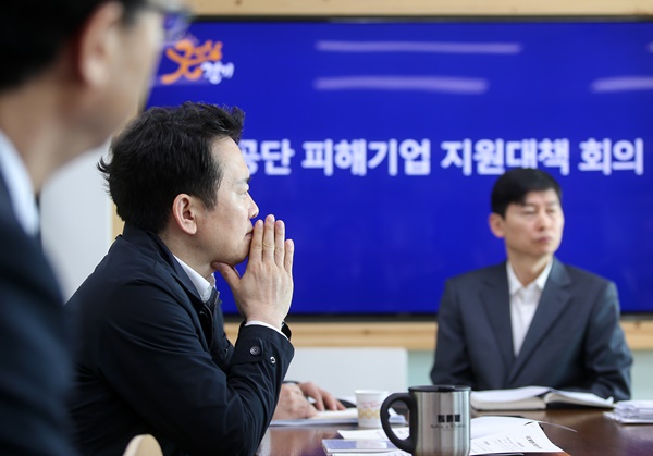 ³²°æÇÊ °æ±âµµÁö»ç(¿ÞÂÊ)°¡ 17ÀÏ ¿ÀÀü Áý¹«½Ç¿¡¼­ ¡®°³¼º°ø´Ü ÇÇÇØ±â¾÷ Áö¿ø´ëÃ¥ ȸÀÇ¡¯¸¦ ÁÖÀçÇϰí ÀÖ´Ù. <<»çÁø= °æ±âµµ Á¦°ø>>