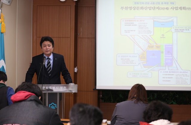 ±è¸¸¼ö ºÎõ½ÃÀåÀÌ 3ÀÏ ¿ÀÀü ½Ãû 3Ãþ ºê¸®Çη뿡¼ ±âÀÚȸ°ßÀ» ¿°í ºÎõ ¿µ»ó¹®È»ê¾÷´ÜÁöÀÇ 1´Ü°è »ç¾÷ºÎÁö(22¸¸340§³)¿¡ ´ëÇÑ °³¹ß°èȹÀ» ¹ßÇ¥Çϰí, Á¶¼ºµÇ´Â °ü·Ã ½Ã¼³¿¡ ´ëÇØ ¼³¸íÇϰí ÀÖ´Ù. 2016.3.3 <<»çÁø= ºÎõ½Ã Á¦°ø>>