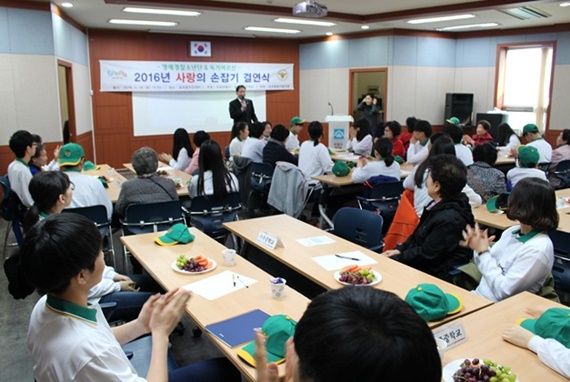 ºÎõ½Ã ¿ÀÁ¤ ¼º°îµ¿ Áֹμ¾ÅÍ´Â Áö³ 26ÀÏ ºÎõ¿ÀÁ¤°æÂû¼(¼Àå ¹Úµ¿¼ö)¿Í ¡®»ç¶ûÀÇ ¼ÕÀâ±â¡¯ °á¿¬½ÄÀ» °³ÃÖÇß´Ù. À̳¯ ¸í¿¹°æÂû¼Ò³â´Ü 40¸í°ú Àú¼Òµæ µ¶°Å³ëÀÎ 20¸íÀÌ °á¿¬À» ¸Î¾ú´Ù.