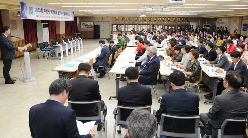 ºÎõ½Ã´Â 28ÀÏ ½Ãû ¼ÒÅ븶´ç¿¡¼­ ¡®ºÎõ½Ã ÇàÁ¤Ã¼Á¦ ¹ßÀü ¹æ¾È¡¯À̶õ ÁÖÁ¦·Î Á¦63ȸ ½Ã¹ÎÁ¤Ã¥ Åä·Ðȸ¸¦ °³ÃÖÇß´Ù. 2016.4.28