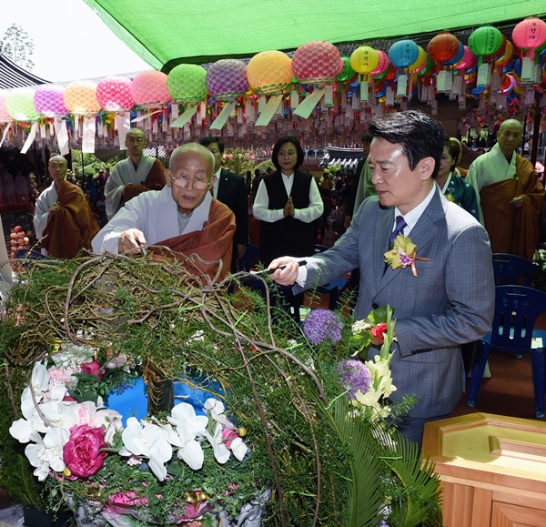 ³²°æÇÊ °æ±âÁö»ç°¡ 14ÀÏ ºÒ±â 2560³â ºÎó´Ô ¿À½Å ³¯ ³²¾çÁֽà ºÀ¼±»ç¿¡¼­ ¿­¸° ºÀÃà¹ý¿ä½Ä¿¡ Âü¼®ÇØ Á¶½Ç Å«½º´Ô°ú ÇÔ²² °üºÒ(δÝÖ) ¹× ÇåÈ­¸¦ Çϰí ÀÖ´Ù. 2016.5.14 /»çÁø= °æ±âµµ Á¦°ø