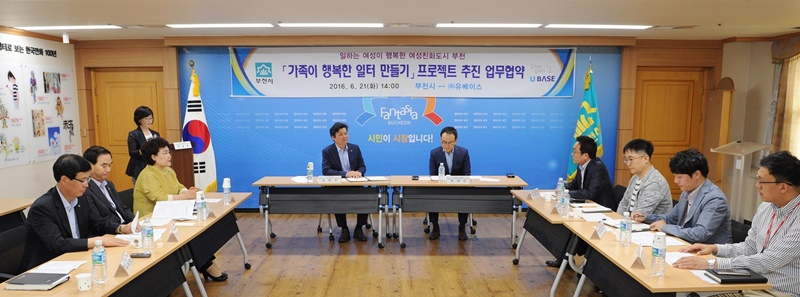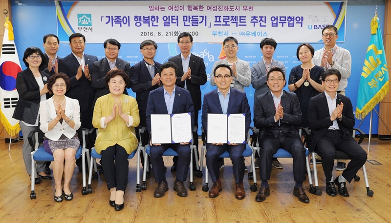 ±è¸¸¼ö ºÎõ½ÃÀå(¿ÞÂÊ)°ú Çã´ë°Ç ¢ßÀ¯º£À̽º ´ëÇ¥(¿À¸¥ÂÊ)°¡ 21ÀÏ ¿ÀÈÄ ½Ãû ¸¸³²½Ç¿¡¼ °¡Á·ÀÌ ÇູÇÑ ÀÏÅÍ ¸¸µé±â ÇÁ·ÎÁ§Æ® ÃßÁøÀ» À§ÇÑ ¾÷¹«Çù¾àÀ» ü°áÇÏ°í ±â³äÃÔ¿µÀ» Çϰí ÀÖ´Ù. 2016.6.21