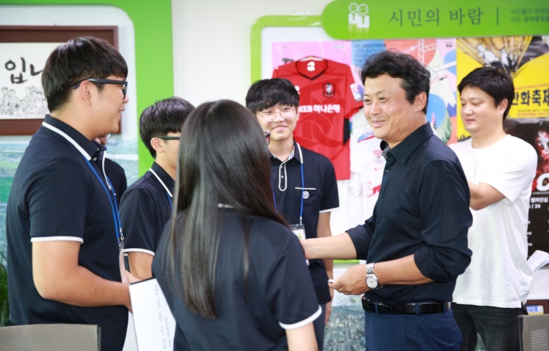 7ÀÏ ºÎõ½Ã¸³ ¿ø¹Ìµµ¼­°ü ºÎõ¾¾¾Ñ±æ¼¾ÅÍ¿¡ µû¸£¸é À̳¯ ±è¸¸¼ö ½ÃÀåÀ» ¸¸³­ û¼Ò³âµéÀº CEO, °ÇÃà»ç, ¾à»ç, ¹°¸®Ä¡·á»ç µîÀ» Àå·¡ Á÷¾÷À¸·Î Èñ¸ÁÇß°í, ±è ½ÃÀå¿¡°Ô û¼Ò³â±âºÎÅÍ È®½ÇÇÑ ¹Ì·¡ ¸ñÇ¥°¡ ÀÖ¾ú´ÂÁö, ºÎõ½ÃÀåÀÌ µÈ °è±â, ½ÃÀåÀÌ µÈ ÈÄ ¸¶À½ÀÇ º¯È­, ²ÞÀ» ÀÌ·ç±â±îÁöÀÇ °í¹Î°ú µÎ·Á¿ò ±Øº¹ ¹æ¹ý, ½ÃÀåÀÇ ¸®´õ½Ê, Ãë¹Ì µî ´Ù¾çÇÑ Áú¹®À» Çß´Ù.