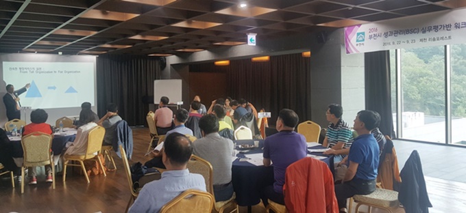 ºÎõ½Ã´Â Áö³ 22Àϰú 23ÀÏ ÀÌÆ²°£ ÃæºÏ Á¦Ãµ½Ã ¼ÒÀç ¸®¼ØÆ÷·¹½ºÆ®¿¡¼ °£ºÎ°ø¹«¿ø°ú ½Ç¹«Æò°¡À§¿ø µî 26¸íÀÌ Âü¿©ÇÑ °¡¿îµ¥ ¼º°ú°ü¸®(BSC) °íµµÈ¸¦ À§ÇÑ ½Ç¹«Æò°¡¹Ý ¿öÅ©¼óÀ» °³ÃÖÇß´Ù.