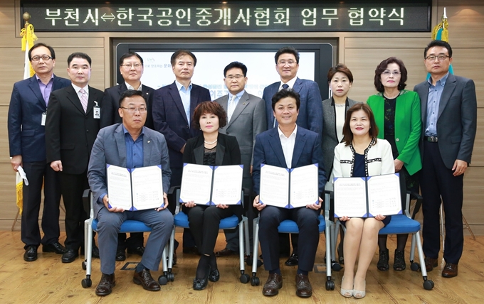 ³ë±ÙÈ£ Çѱ¹°øÀÎÁß°³»çÇùȸ ºÎõ½Ã ¿ÀÁ¤ÁöȸÀå, ±è¿µ³² ¿ø¹ÌÁöȸÀå, ±è¸¸¼ö ºÎõ½ÃÀå, ¹æ°æÀÚ ¼Ò»çÁöȸÀå(¿ÞÂʺÎÅÍ)ÀÌ 17ÀÏ ºÒ¹ý Áß°³ÇàÀ§ ±ÙÀý À§ÇÑ ¾÷¹«Çù¾àÀ» ü°áÇÑ µÚ ±â³äÃÔ¿µÀ» Çϰí ÀÖ´Ù. 2016.10.17