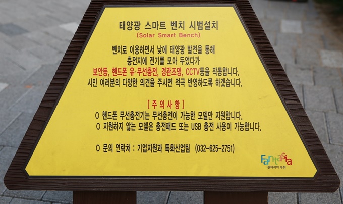 ½º¸¶Æ®Æù »ç¿ëÀÌ »ýȰȭµÇ¸é¼­ ºÎõ½Ãû Àܵð±¤Àå¿¡ ÇÞºû ¿¡³ÊÁö¸¦ ¸ð¾Æ ÈÞ´ëÆù ÃæÀüÀ» ÇÒ ¼ö ÀÖ´Â ¡®Å¾籤 ½º¸¶Æ® º¥Ä¡(Solar Smart Bench)¡¯°¡ ½Ã¹ü ¼³Ä¡µÅ ½Ã¹Îµé¿¡°Ô ÁÁÀº ¹ÝÀÀÀ» ¾ò°í ÀÖ´Ù.