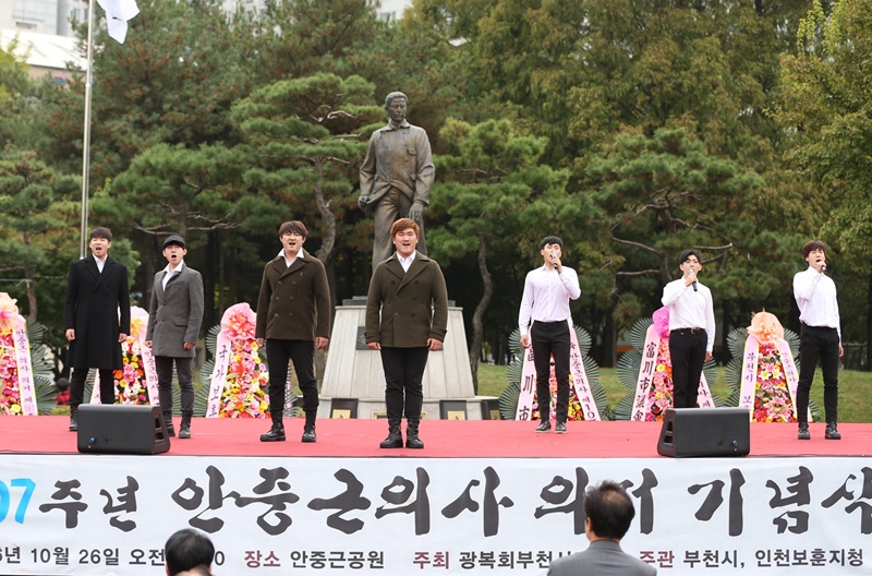 26ÀÏ ¿ÀÀü ºÎõ½Ã Áßµ¿ ¾ÈÁß±Ù°ø¿ø¿¡¼ ¿¸° ¡®¾ÈÁß±Ù ÀÇ»ç ÀǰŠ107Áֱ⠱â³ä½Ä¡¯¿¡¼ ½ÄÀü°ø¿¬À» ºÎõ ¸µÄÁÇϿ콺½ºÄð ÇлýµéÀÌ ¡®Á¶±¹ÀÇ È¥- ¾ÈÁß±Ù ÀÇ»ç, À̵î¹Ú¹®À» ½î´Ù¡¯¶ó´Â ÁÖÁ¦·Î Ãã °ø¿¬À» ÆîÃĺ¸À̰í ÀÖ´Ù. 2016.10.26 »çÁø= ºÎõ½Ãû Á¦°ø