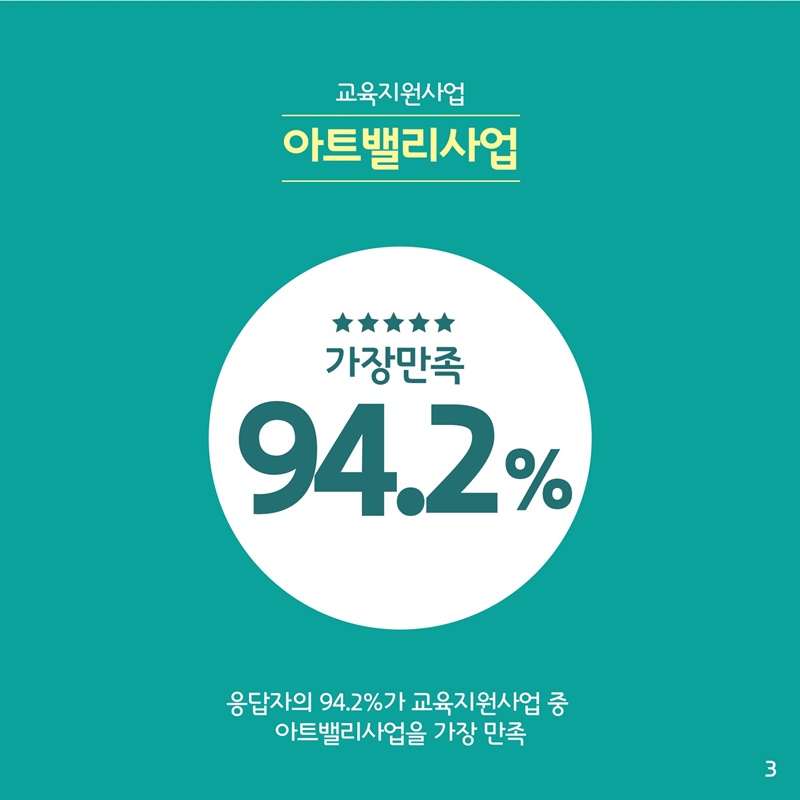 ºÎõ¾ÆÆ®¹ë¸®»ç¾÷¿¡ ¸¸Á·ÇÏ´Â ÀÌÀ¯·Î´Â ÀÀ´äÀÚ 56.7%°¡ ¡®´Ù¾çÇÑ ¿¹¼ú±³À° üÇ衯À» 1¼øÀ§·Î ²Å¾Ò°í, ±³À°ºñ ºÎ´ã Àý°¨(20.8%), ¹®È¿¹¼ú °¨¼ö¼º Çâ»ó(14.6%), °ø±³À° Ȱ¼ºÈ(6.3%), ±âŸ(1.6.%) ¼øÀ¸·Î ²Å¾Ò´Ù.