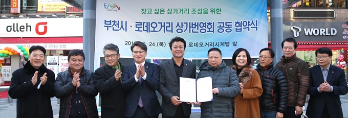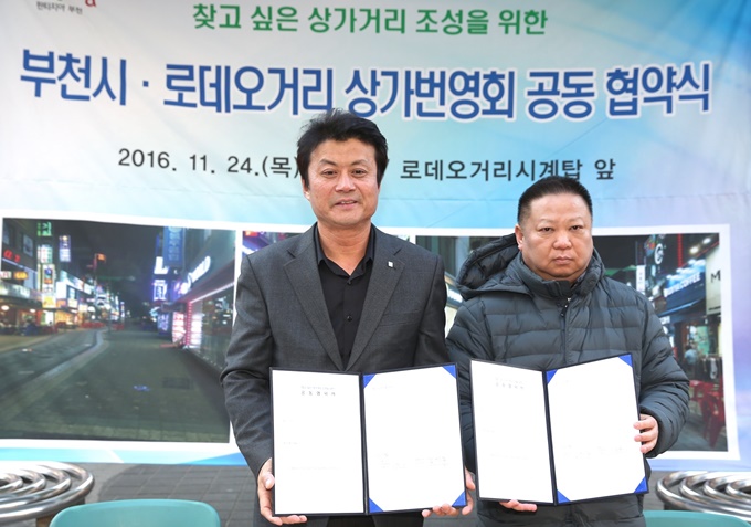 ±è¸¸¼ö ºÎõ½ÃÀå(¿ÞÂÊ)°ú ÀÌõ¿ì ·Îµ¥¿À°Å¸® »ó°¡¹ø¿µÈ¸ÀåÀÌ 24ÀÏ ¿ÀÈÄ 3½Ã30ºÐ »óµ¿ ·Îµ¥¿À°Å¸®¿¡¼­ ¡®Ã£°í ½ÍÀº »ó°¡°Å¸® Á¶¼ºÀ» À§ÇÑ ¾÷¹«Çù¾à½Ä¡¯À» °®°í ±â³äÃÔ¿µÀ» Çϰí ÀÖ´Ù.»çÁø/ºÎõ½Ã °¡·ÎÁ¤ºñ°ú Á¦°ø