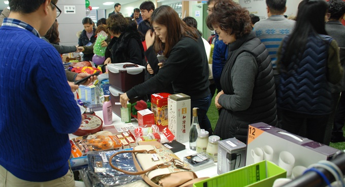 ¡ãÀÓ¸íÈ£ °ø´Ü ÀÌ»çÀå(¿À¸¥ÂÊ)ÀÌ ¡®ÀÚ¿ø¼øÈ¯ ¾Æ³ª¹Ù´Ù ³ª´®ÀåÅÍ¡¯¿¡¼­ Á÷¿øµéÀÌ ±âºÎÇÑ ¹°Ç°À» ±¸¸ÅÇϰí ÀÖ´Ù.