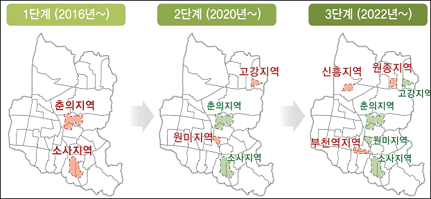 ºÎõ½Ã´Â 1´Ü°è »ç¾÷ÀÌ ¿Ï·áµÇ¸é, 2´Ü°è·Î ¿ø¹Ì, °í°Áö¿ª, 3´Ü°è·Î ½ÅÈï, ¿øÁ¾, ºÎõ¿ª Áö¿ª µîÀ» ´Ü°èÀûÀ¸·Î µµ½ÃÀç»ý»ç¾÷À» ÃßÁøÇÒ °èȹÀÌ´Ù.