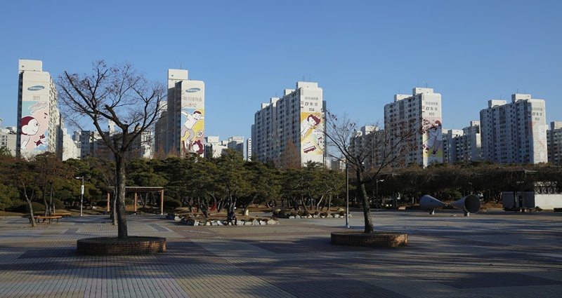 20ÀÏ ºÎõ½Ã ¸¸È¾Ö´Ï°ú ¸¸È2ÆÀ¿¡ µû¸£¸é ±¹³» ´ëÇ¥Àû ¸¸ÈÁøÈï±â°üÀÌ (Àç)Çѱ¹¸¸È¿µ»óÁøÈï¿ø(»ó3µ¿ ¼ÒÀç)°ú ÇÔ²² »ç¾÷ È¿°ú, ÁÖº¯ °æ°ü µîÀ» °í·ÁÇØ Áß¾Ó°ø¿ø ÁÖº¯ ¹Ì¸®³»¸¶À»¤ý¹«Áö°³¸¶À»À» ¼±Á¤ÇØ ÀÌµé ¾ÆÆÄÆ® 6°³µ¿(ÔÖ) ¿Üº®¿¡ ¡®¸¸È º®È¡¯¸¦ ¼±º¸¿´´Ù.