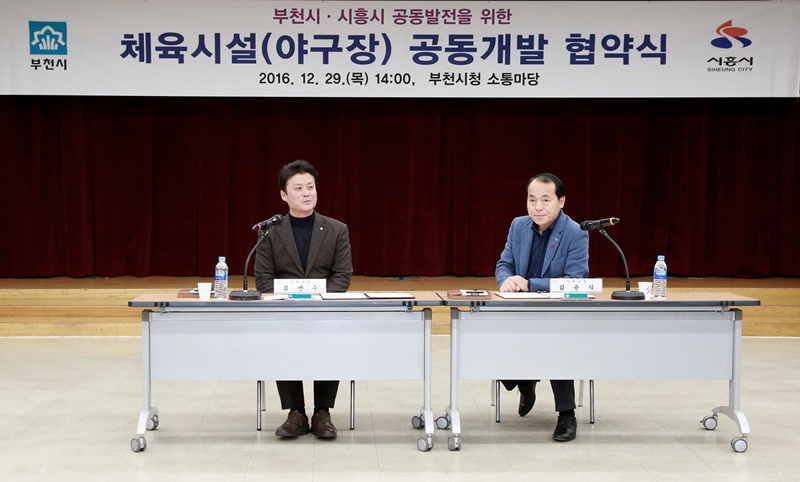 ±è¸¸¼ö ºÎõ½ÃÀå(¿ÞÂÊ)°ú ±èÀ±½Ä ½ÃÈï½ÃÀå(¿À¸¥ÂÊ)ÀÌ 29ÀÏ ¿ÀÈÄ 2½Ã ºÎõ½Ãû 3Ãþ ¼ÒÅ븶´ç¿¡¼ µÎ µµ½ÃÀÇ °øµ¿¹ßÀüÀ» À§ÇÑ Ã¼À°½Ã¼³(¾ß±¸Àå) °øµ¿°³¹ß ¾÷¹« Çù¾àÀ» ü°áÇÏ°í ±â³äÃÔ¿µÀ» Çϰí ÀÖ´Ù. 2016.12.29 »çÁø= ºÎõ½Ãû Á¦°ø