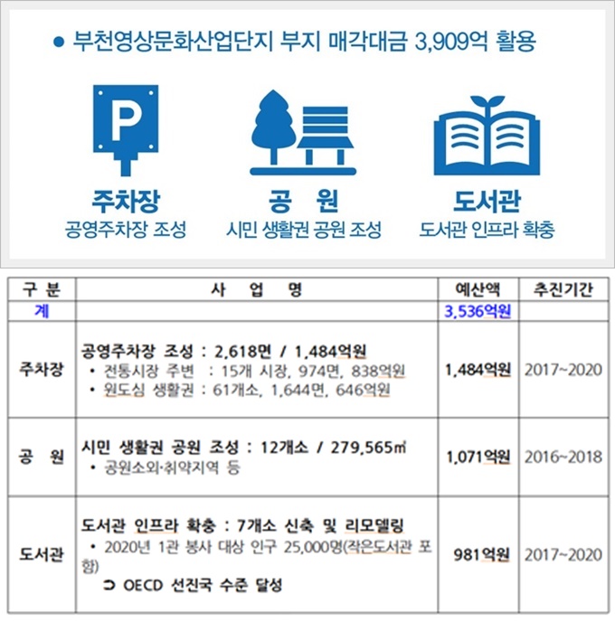 ±è¸¸¼ö ½ÃÀåÀº ¡°ºÎõ¿µ»ó¹®È»ê¾÷´ÜÁö ºÎÁö ¸Å°¢´ë±Ý 3õ909¾ï¿ø(º¹Çսü³¿ëÁö10 ½Å¼¼°èÄÁ¼Ò½Ã¾ö 2õ311¾ï, º¹Çսü³¿ëÁö2¤ý3 1õ3¾ï, CT»ê¾÷ij¸¯Åͼ¾ÅÍ1¤ý2¤ý3 595¾ï- 2017~2018 ¸Å°¢ ¿¹Á¤)À» Ȱ¿ëÇØ ÁÖÂ÷Àå¤ý°ø¿ø¤ýµµ¼°ü µîÀ» Á¶¼ºÇϰڴ١±°í ¹àÇû´Ù. ¶Ç ¡°¹®È¿¹¼úȸ°ü °Ç¸³ºñ¿ë 1õ¾ï¿øÀº Áßµ¿ 1155¹øÁö Áßµ¿Æ¯º°°èȹ1±¸¿ª ¸Å°¢´ë±ÝÀ¸·Î Ãæ´çÇϱâ·Î Çß´Ù¡±°í µ¡ºÙ¿´´Ù.