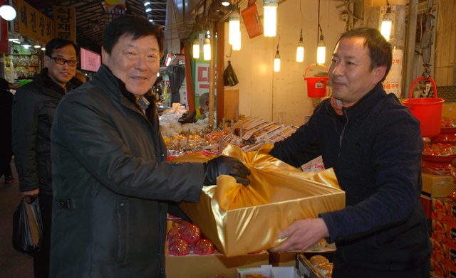 ºÎõ½Ã ½Ã¼³°ü¸®°ø´Ü Á÷¿øµéÀÌ 25ÀÏ ¼³ ¸íÀýÀ» ¸Â¾Æ ¿ø¹ÌÁ¾ÇÕ½ÃÀå¿¡¼ Á¦¼ö¿ëǰÀ» ±¸¸ÅÇÏ´Â ÀüÅë½ÃÀå À庸±â¸¦ Çϰí ÀÖ´Ù.
