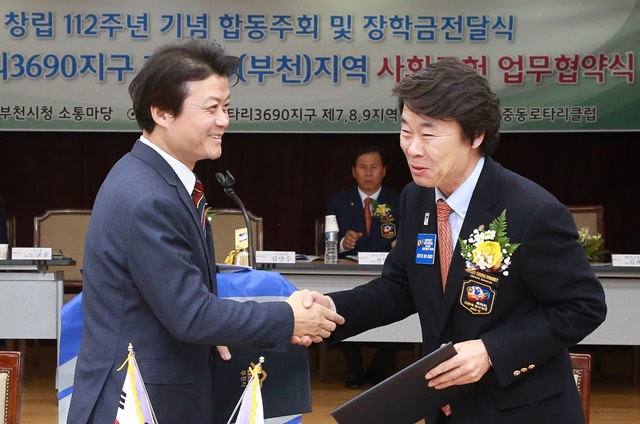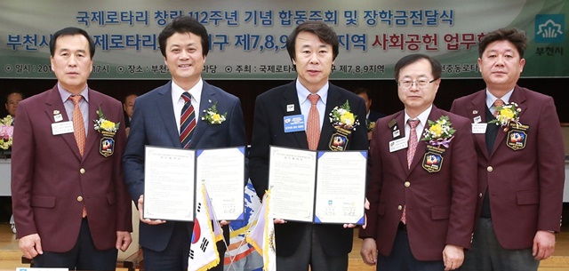 ºÎõ½Ã¿Í ±¹Á¦·ÎŸ¸® 3690Áö±¸ ºÎõÁö¿ª(Á¦7,8,9Áö¿ª) ·ÎŸ¸®Å¬·´Àº Áö³ 23ÀÏ ¿ÀÈÄ ºÎõ½Ãû ¼ÒÅ븶´ç¿¡¼ ±è¸¸¼ö ºÎõ½ÃÀå°ú ³ë±ÕÈ£ ±¹Á¦·ÎŸ¸® 3690Áö±¸ ÃÑÀ縦 ºñ·ÔÇØ ºÎõÁö¿ª(Á¦7,8,9Áö¿ª) ·ÎŸ¸®Å¬·´ ȸ¿øµé°ú ·ÎŸ¸® ÀåÇлý 200¿© ¸íÀÌ Âü¼®ÇÑ °¡¿îµ¥ ÀÚ¹ßÀû »çȸ°øÇå Ȱµ¿°ú ±âºÎ¹®È Ȱ¼ºÈ¸¦ À§ÇÑ ¾÷¹«Çù¾àÀ» ü°áÇß´Ù.