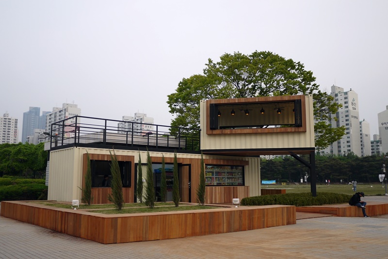 Áß¾Ó°ø¿ø Áß¾Ó¿¡ ÀÚ¸®ÀâÀº ¡®Cafe ½°Ç¥¡¯´Â °ÇÃàºñ¿ëÀÌ Àû°Ô µå´Â À̵¿½Ä ÄÁÅ×À̳ʷΠÁ¦À۵ưí, ÁÖº¯¿¡´Â ½ºÄ«ÀÌ·ÎÄÏÇâ µî ³ª¹«¿Í ½Ä¹°À» Á¶È­·Ó°Ô ¹èÄ¡ÇßÀ¸¸ç, ¾Æ¸§µå¸® ³ª¹« µÑ·¹·Î ´©±¸³ª ÀÚÀ¯·Ó°Ô ÈÞ½ÄÇÒ ¼ö ÀÖ´Â ¹®È­ÈÞ°Ô°ø°£À¸·Î ²Ù¸ç ÀÌ»öÀûÀÎ ÈÞ°Ô°ø°£À» Á¦°øÇϰí ÀÖ´Ù.