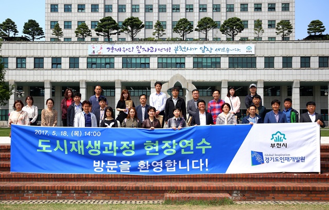 18ÀÏ ¿ÀÈÄ ºÎõ½Ã µµ½ÃÀçÀï ¿ì¼ö »ç·Ê·Î ²ÅÇϰí ÀÖ´Â ºÎõ¿©¿ù³ó¾÷°ø¿øÀ» °ßÇÐÇϱâ À§ÇØ Ã£Àº °æ±âµµÀÎÀç°³¹ß¿ø µµ½ÃÀç»ý°úÁ¤¹Ý Âü°¡ °ø¹«¿øµéÀÌ ±è¸¸¼ö ºÎõ½ÃÀå°ú ÇÔ²² ºÎõ½Ãû»ç¸¦ ¹è°æÀ¸·Î ±â³äÃÔ¿µÀ» Çϰí ÀÖ´Ù.