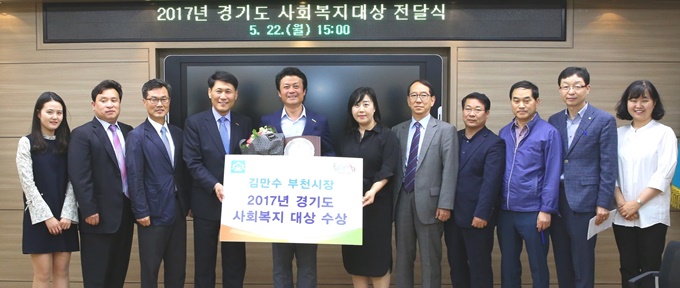 ±è¸¸¼ö ºÎõ½ÃÀåÀÌ 22ÀÏ °æ±âµµ »çȸº¹Áö»çÇùȸ·ÎºÎÅÍ 2017³â °æ±âµµ »çȸº¹Áö´ë»óÀ» ¼ö»óÇß´Ù.