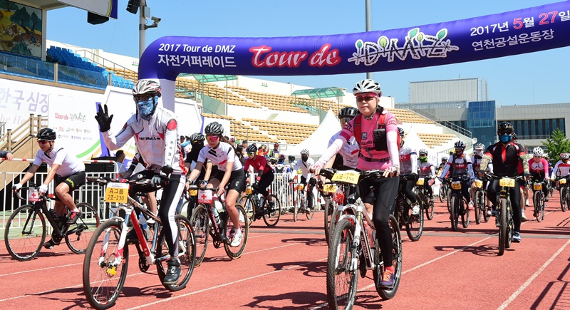 °æ±âµµ´Â °æ±â¤ý°¿ø DMZ ÀÏ¿ø 62Km¸¦ ÀÚÀü°Å·Î ´Þ¸®´Â ¡®2017 ¶Ñ¸£ µå µð¿¥Áö(Tour de DMZ) ÀÚÀü°Å ÆÛ·¹À̵塯 Çà»ç°¡ 27ÀÏ ÀÚÀü°Å ¶óÀÌ´õ 2õ¿© ¸íÀÌ Âü°¡ÇÑ °¡¿îµ¥ ¼ºÈ²¸®¿¡ °³Ãֵƴٰí 28ÀÏ ¹àÇû´Ù. |