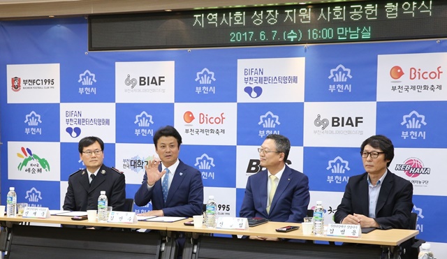 À̳¯ Çù¾à½Ä¿¡¼­ ±è¸¸¼ö ºÎõ½ÃÀåÀº ¡°À̹ø Çù¾àÀ» ±â¹ÝÀ¸·Î ºÎõ½Ã¤ý±¹¹ÎÀºÇà¤ý±¸¼¼±º ÀÚ¼±³¿ºñº»ºÎ¤ýºÎõÈñ¸ÁÀç´ÜÀÇ Áö¼ÓÀûÀÎ Çù·ÂÀ» ÅëÇØ ºÎõ½Ã¹ÎÀÇ º¹Áö°¡ Çâ»óµÇ°í Áö¿ª»çȸ°¡ ¼ºÀåÇÏ´Â ¹Ø°Å¸§ÀÌ µÉ °ÍÀ¸·Î ±â´ëÇÑ´Ù¡±°í ¸»Çß´Ù.