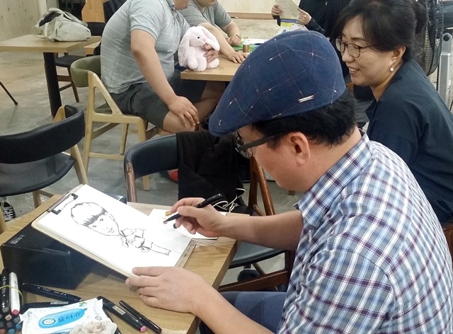 Á¤ÀçÈÆ ÀÛ°¡°¡ ij¸®Ä¿Ã³¸¦ ±×·ÁÁÖ°í ÀÖ´Ù.