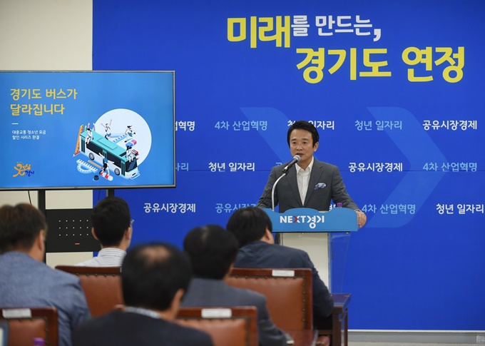 ³²°æÇÊ °æ±âµµÁö»ç°¡ 26ÀÏ ¿ÀÀü °æ±âµµÃ» ºÏºÎû»ç Á¦2ȸÀǽǿ¡¼­ ºê¸®ÇÎÀ» °®°í û¼Ò³â ¸¶À»¹ö½º ¿ä±Ý ÀÎÇÏ, ¹ö½º Áذø¿µÁ¦ µî °æ±âµµ ¹ö½ºÁ¤Ã¥¿¡ ´ëÇØ ¼³¸íÇϰí ÀÖ´Ù. 2017.7.26 »çÁø= °æ±âµµ Á¦°ø