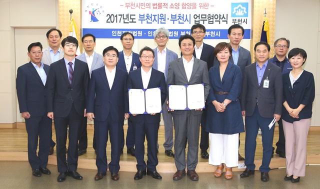 ºÎõ½Ã¿Í ÀÎõÁö¹æ¹ý¿ø¤ýÀÎõ°¡Á¤¹ý¿ø ºÎõÁö¿øÀº 29ÀÏ ºÎõÁö¿ø¿¡¼ ±è¸¸¼ö ºÎõ½ÃÀå°ú ±è¼öÀÏ ºÎõÁö¿øÀå µî ¾ç ±â°ü °ü°èÀÚµéÀÌ Âü¼®ºÎõ½Ã¹ÎÀÇ ¹ý·üÀû ¼Ò¾ç ÇÔ¾çÀ» À§ÇÑ ´Ù¾çÇÑ È°µ¿¿¡ »óÈ£Çù·ÂÇϱâ À§ÇÑ ¾÷¹«Çù¾àÀ» ü°áÇß´Ù.