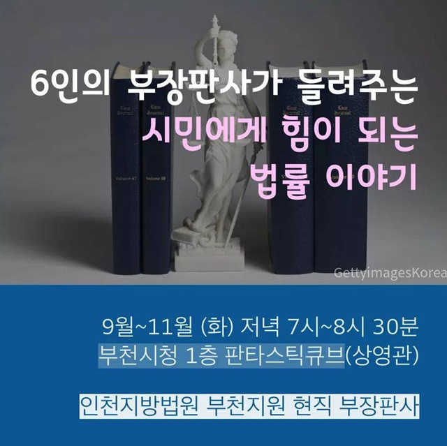 ù °øµ¿»ç¾÷À¸·Î ºÎõ½Ã Æò»ýÇнÀ¼¾ÅͰ¡ ¿î¿µÇÏ´Â ½Ã¹Î´ëÇаúÁ¤ÀÌ ¸¶·ÃµÆ´Ù. ¿À´Â 9¿ù 5ÀϺÎÅÍ °ÝÁÖ È¿äÀϸ¶´Ù ÃÑ 6ȸ °úÁ¤À¸·Î ¡®½Ã¹Î¿¡°Ô ÈûÀÌ µÇ´Â ¹ý·üÀ̾߱⡯¸¦ ºÎõ½Ãû 1Ãþ ÆÇŸ½ºÆ½ Å¥ºê¿¡¼ ¿¬´Ù. ¢º°ü·Ã±â»ç Ŭ¸¯