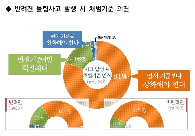 °³·Î ÀÎÇÑ ÀθíÇÇÇØ ¹ß»ý½Ã ÇöÇà ó¹ú±âÁØ¿¡ ´ëÇØ¼­´Â 81%°¡ ¡®°­È­ÇØ¾ß ÇÑ´Ù¡¯°í ´äÇß°í, °³¸¦ Ű¿ì´Â ¹Ý·ÁÀÎÀÇ °æ¿ì¿¡µµ 67%°¡ ó¹ú ±âÁØ °­È­¿¡ Âù¼ºÇß´Ù. ÇöÇà¹ý»óÀ¸·Î´Â ÃÖ´ë 700¸¸¿ø ÀÌÇÏ ¹ú±Ý ¶Ç´Â 2³â ÀÌÇÏ ±Ý°íÇü¿¡ óÇÒ ¼ö ÀÖ´Ù.