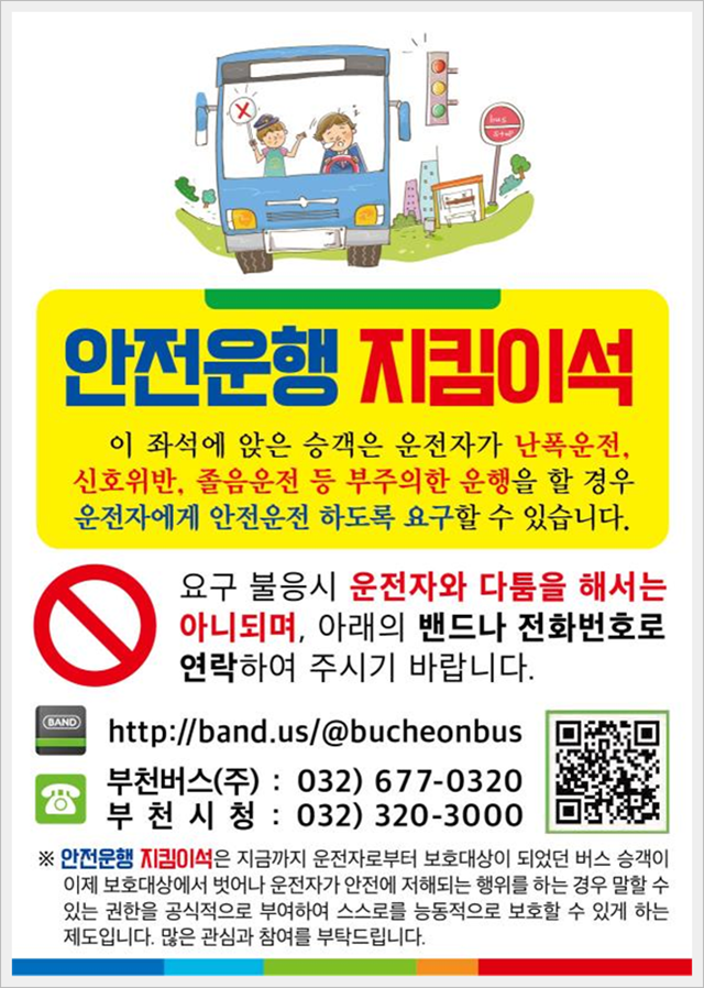 À̽ÂÇ¥ ºÎõ½Ã ±³Åë»ç¾÷´ÜÀåÀº ¡®¾ÈÀü¿îÇà ÁöÅ´À̼®¡¯ µµÀÔ°ú °ü·Ã, ¡°¿î¼ö¾÷ü¿¡¼ ¡®¾ÈÀü¿îÇà ÁöÅ´À̼®¡¯ ¾È³»¹®°ú ½ÃÆ® Ä¿¹ö µîÀ» Á¦ÀÛÇØ ½Ã¹ü ¿î¿µÇÑ ÈÄ ½Ã¿¡¼ ¾È³»¹®ÀÇ ³»¿ë ¹× µðÀÚÀÎÀ» Áö¿øÇÒ °èȹ¡±À̶ó¸ç ¡°Â÷·® ³» ¾È³»¹®, ¹êµå È«º¸ µîÀ» ÅëÇØ ¹ö½º ½Â°´µé¿¡°Ô ¹ö½º ¾ÈÀü¿îÇàÀ» À§ÇÑ ¡®ÁöÅ´À̼®¡¯¿¡ ¸¹Àº °ü½É°ú Âü¿©¸¦ ÇØ ÁÙ °Í¡±À» ´çºÎÇß´Ù.