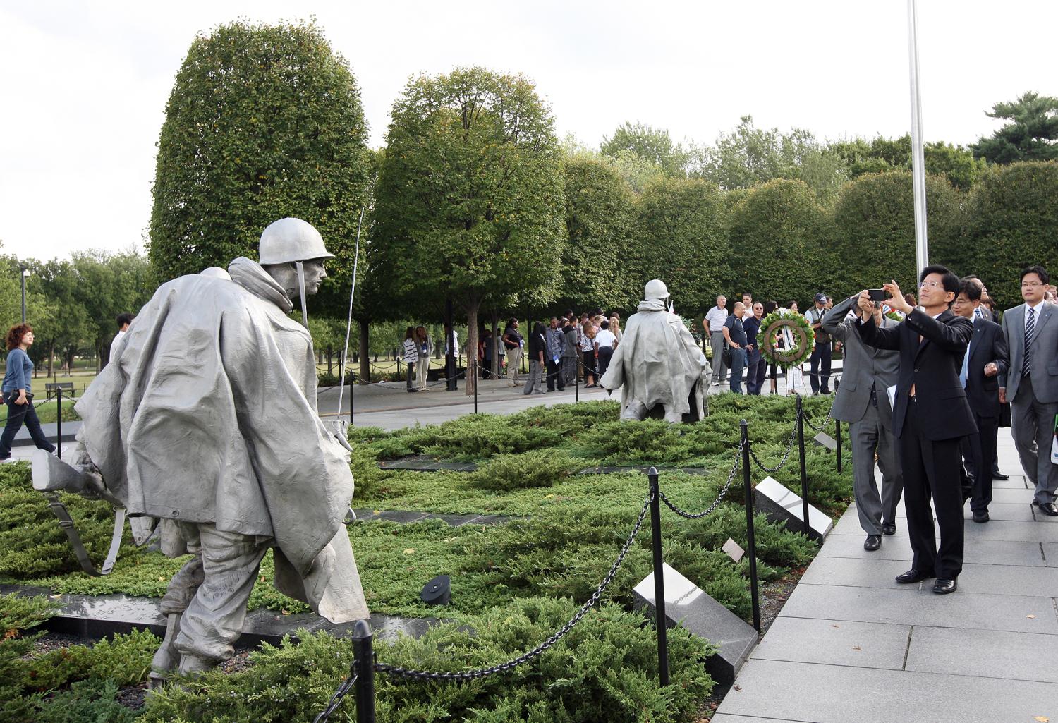 ¡â¹Ì±¹À» ¹æ¹®ÇÑ ±è¹®¼ö °æ±âµµÁö»ç°¡ 9¿ù28ÀÏ(ÇöÁö ½Ã°£) ¿ö½ÌÅÏDCÀÇ ¸µÄÁ ¸Þ¸ð¸®¾ó ÆÄÅ© ¾È¿¡ À§Ä¡ÇÑ Çѱ¹Àü ÂüÀüºñ¸¦ ã¾Æ Çåȸ¦ Çϱâ À§ÇØ ÀÔÀåÀ» Çϰí ÀÖ´Ù.