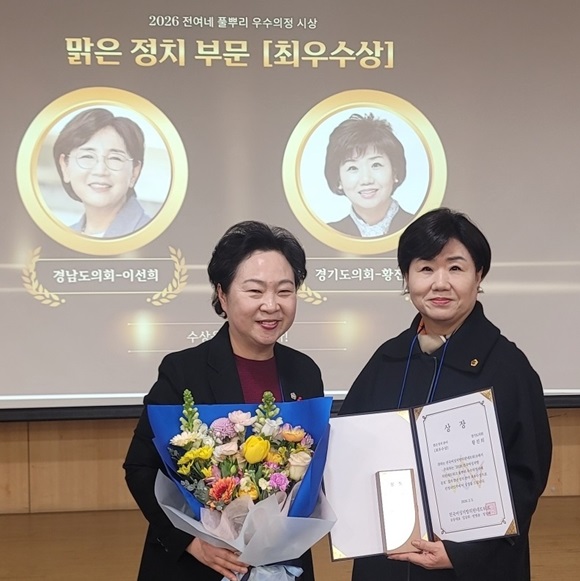 ȲÁøÈñ °æ±âµµÀÇ¿øÀÌ Áö³­ 5ÀÏ ±¹È¸ ÀÇ¿øÈ¸°ü¿¡¼­ ¿­¸° ¡®2026 Àü±¹¿©¼ºÁö¹æÀÇ¿ø³×Æ®¿öÅ© Ç®»Ñ¸® ¿ì¼öÀÇÁ¤¡¯ °ø¸ð¿¡¼­ ¡®¸¼Àº Á¤Ä¡¡¯ ºÐ¾ß ÃÖ¿ì¼ö»óÀ» ¼ö»óÇÏ°í ±â³äÃÔ¿µÀ» Çϰí ÀÖ´Ù.(»çÁø=°æ±âµµÀÇȸ Á¦°ø)