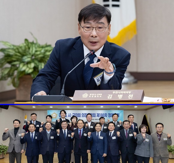 ±èº´Àü ºÎõ½ÃÀÇȸ ÀÇÀåÀÌ ÀÚ³­ 4ÀÏ ºÎõ½ÃÀÇȸ 3Ãþ ´ëȸÀǽǿ¡¼­ ¿­¸° °æ±âµµ½Ã¡¤±ºÀÇȸÀÇÀåÇùÀÇȸ Á¦180Â÷ Á¤·ÊȸÀÇ¿¡¼­ ¹ß¾ðÇϰí ÀÖ´Ù. ¾Æ·¡´Â Á¤·ÊȸÀÇ Âü¼®ÀÚµéÀÌ ±â³ÈÃÔ¿µÀ» Çϰí ÀÖ´Ù.(»çÁø= ºÎõ½ÃÀÇȸ Á¦°ø)