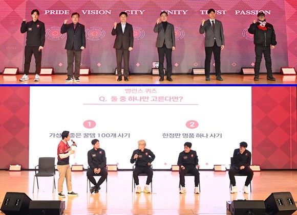 2ºÎ Çà»ç¿¡¼­´Â ±¸´Ü ¹× ¼±¼ö °ü·Ã ÄûÁî¿Í ·°Å°µå·Î¿ì µî ÆÒ Âü¿© À̺¥Æ®°¡ ÁøÇàµÆ´Ù. ¸¶Áö¸·¿¡´Â ¼±¼ö´Ü°ú ÆÒÀÌ ÇÔ²² ¡®±Â¹ÙÀÌ ÇÏÀÌÆÄÀ̺ꡯ·Î K¸®±×1 ½ÃÁðÀÇ ½ÃÀÛÀ» ÈûÂ÷°Ô ¿­¾ú´Ù.